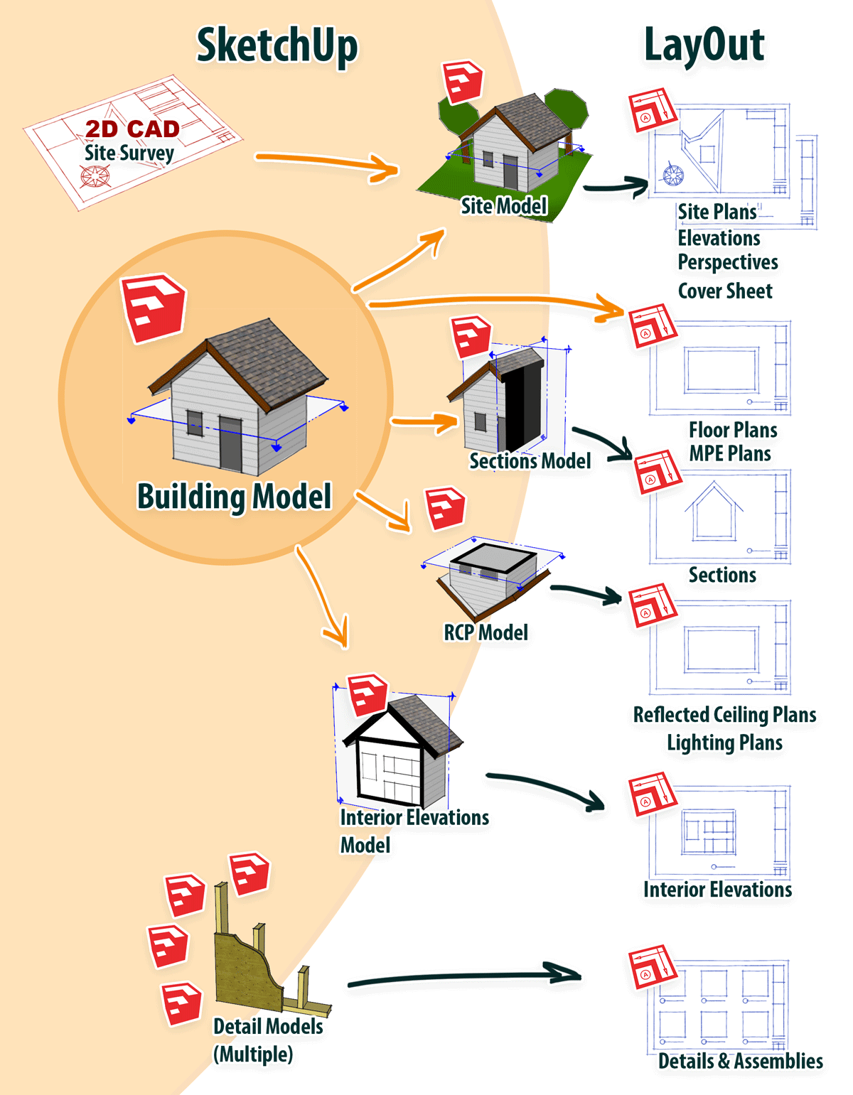 Not only does the book review overall principles and workflows for setting up and organizing a project in Sketchup and LayOut, but we dive into specific, step-by-step techniques for the skills you'll need to know: